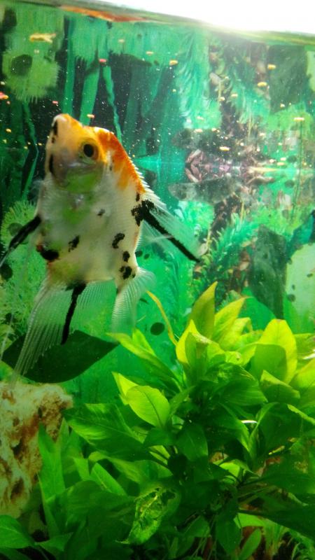 Обменяю одинокую взрослую красную скалярию (размер со спичечный короб) на пару молодых мраморных.