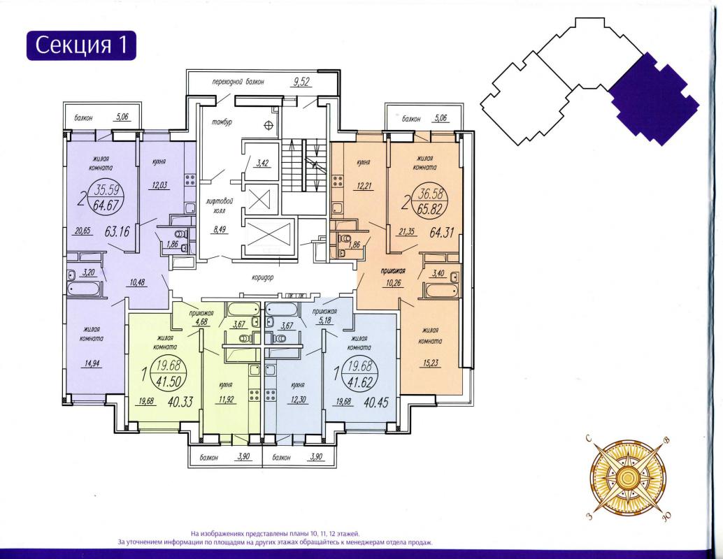 Меня еще смущает расположение трешек все комнаты, кроме одной спальни на север(т.е. солнышка не увидим никогда), потому что дом стоит на широте, север-юг, а по законам инсоляции в трешках не менее одной комнаты на солнечную сторону должно быть, в однушках и двушках более лучшее расположение.