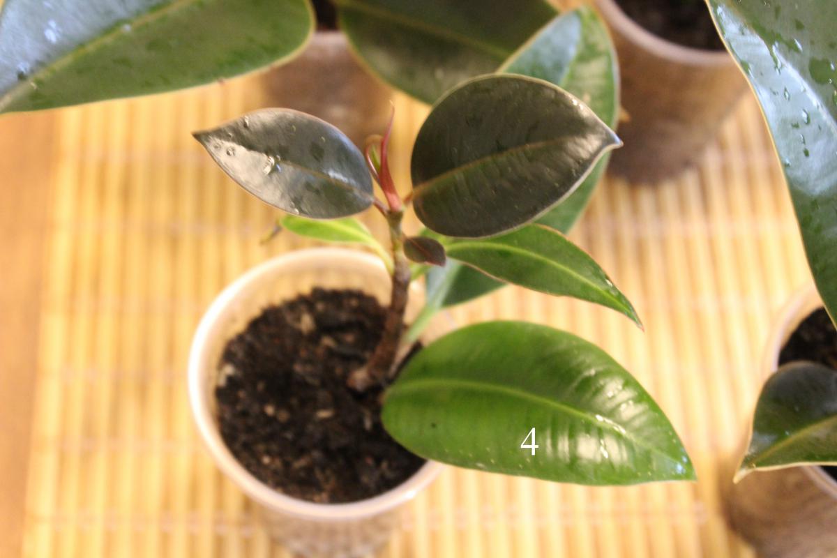 Малыши - фикусы были рассажены отдельно. Фотоаппарат дают некую "серость", но пыли на листиках нет, вполне себе обычные фикусы по цвету.