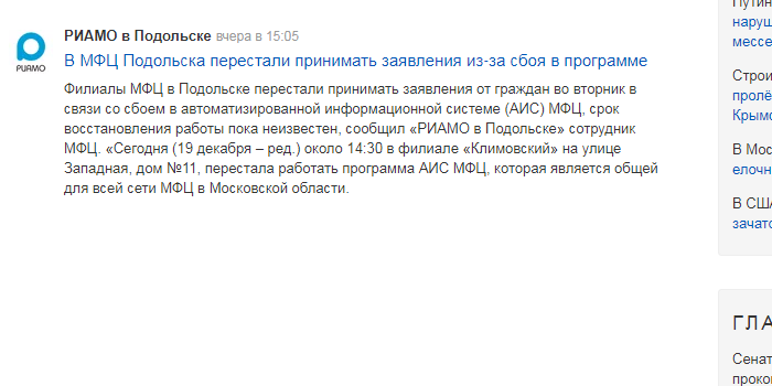 Теперь новостей нет ни на сайте МФЦ, ни в его группе, ни на форуме.