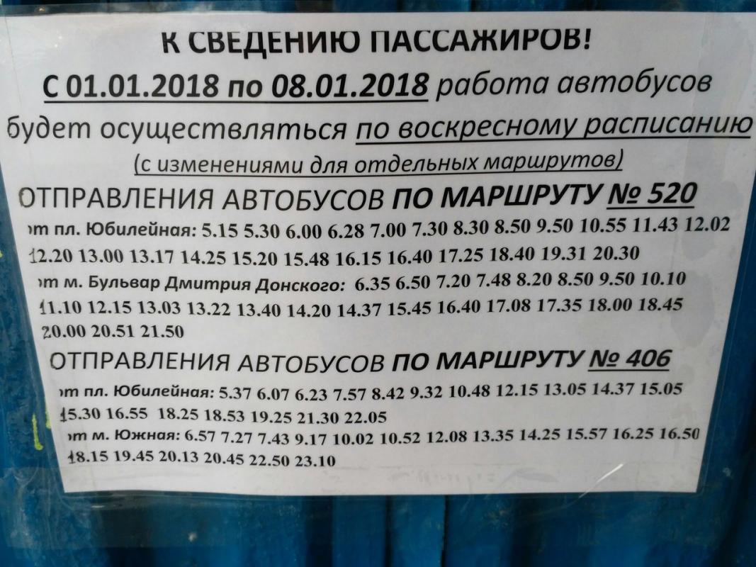 На сайте а/к №1788 вывесили расписание на новогодние праздники. Это абзац! Всего 9 маршрутов автобуса №2 в день - последний в 18.00 вечера и увеличенный интервал автобуса №9 (думаю 1 раз в час) . :wall: Всему Южному предлагается до 8-го января посидеть дома и не ходить ни на какие ёлки-праздники ??? Идиотизм! :mad: