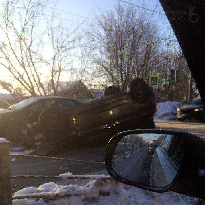 Вероятно, подпрыгнул на открытом люке.На Большой Серпуховской, около посёлка Железнодорожный, перевернулся автомобиль. В строну Подольска собирается пробка