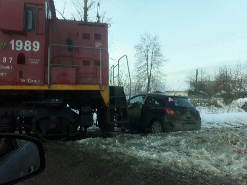 В Подольске, на Нефтебазовзском проезде тепловоз снес легковушку на переезде. О пострадавших не известно.