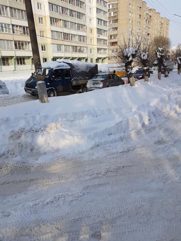 1,5 полосы, с одной стороны сугробы, с другой стороны парковка(официальная) в сугробах (но мы-то знаем, что если убрать снег, то ...опы этих припаркованных авто окажутся на проезжей части, поскольку парковка закладывалась параллельной, а ставят ёлочкой. Но в данный конкретный момент знаем, но молчим)