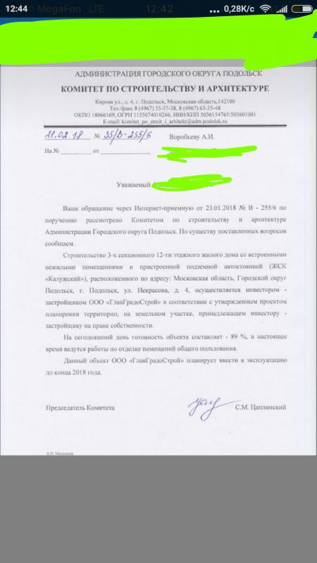 Ситуация очень интересная, председателя теперь заменяет неизвестный нам сотрудник ггс , причем небыло собрания на котором бы кого-то избрали. Сегодня в администрации была назначена встреча с представителями застройщика ГГС ,на которую данные граждане не явились. Делайте выводы господа . Всё решают не поставив в известность пайщиков. Мы этого так не оставим!!!!!?