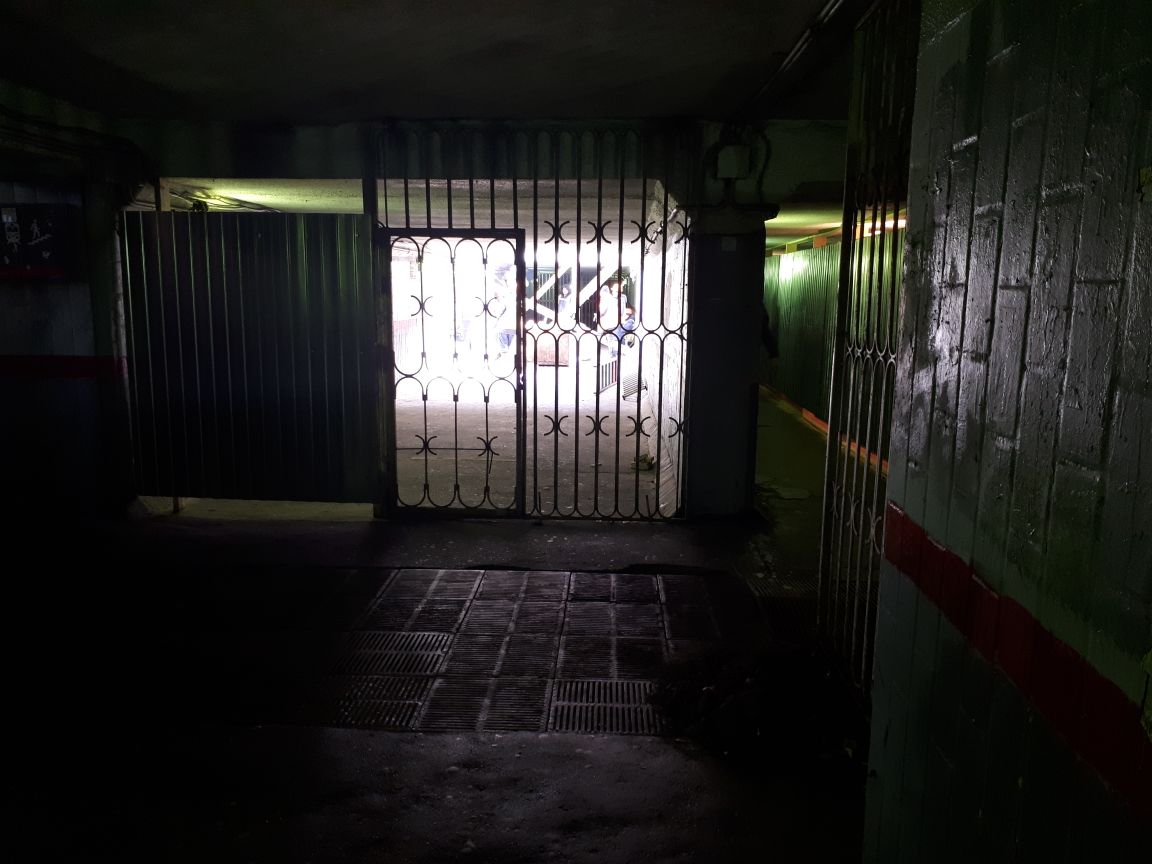 Наконец пробили тоннель станции Подольск для платформы экспрессов №3, на фото - взгляд со стороны ул. Курская, сняты плиты потолка, видна новая схема прохода - пешеходный тоннель временно поделен на три коридора.