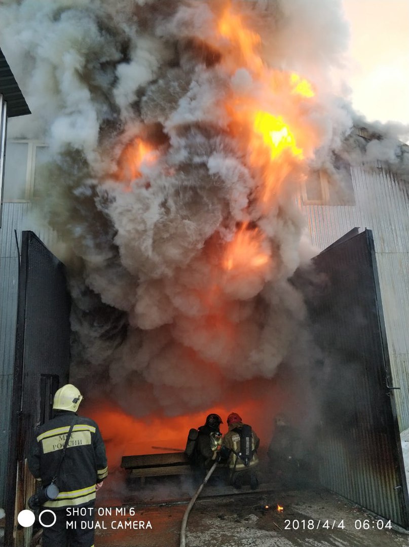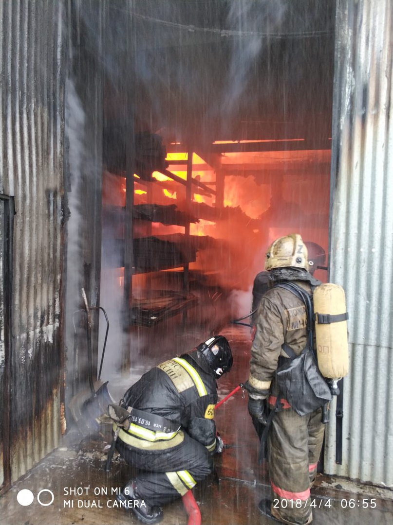 "По прибытию первого пожарного проведена разведка пожара, в ходе которой было установлено, что происходит возгорание склада на площади 200 метров квадратных. В 06.07 произошло возгорание второго рядом стоящего склада 15х30", — говорится в сообщении.