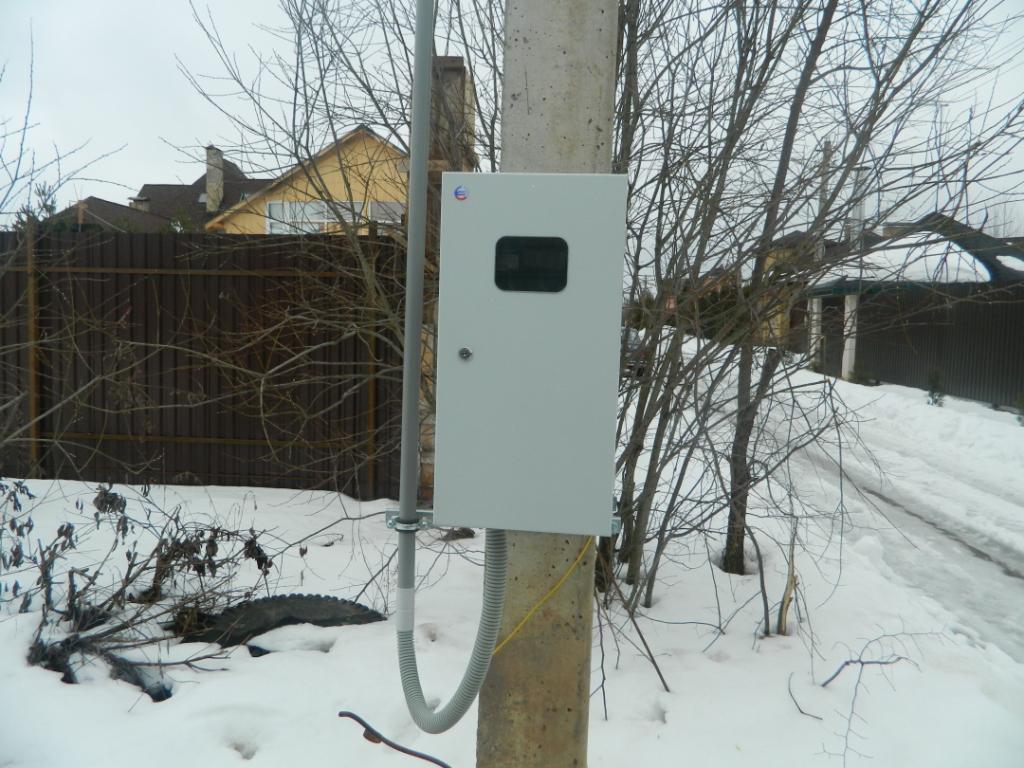 Электромонтаж щита со счетчиком и автоматами защиты, установка электрощита на столб, монтаж воздушной или подземной линии до фасада дома, подключение электрощита внутри дома. Все работы соответствуют требованиям Подольских и Московских электросетей и принимаются инспекторами.