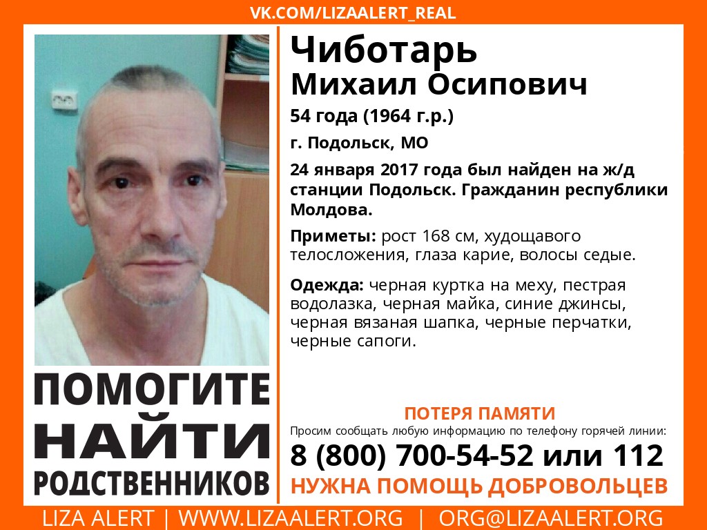 Родные Чиботаря М.О., который на ориентировке, найдены. Они далеко, пока доедут... Сейчас стоп стоит по поиску.