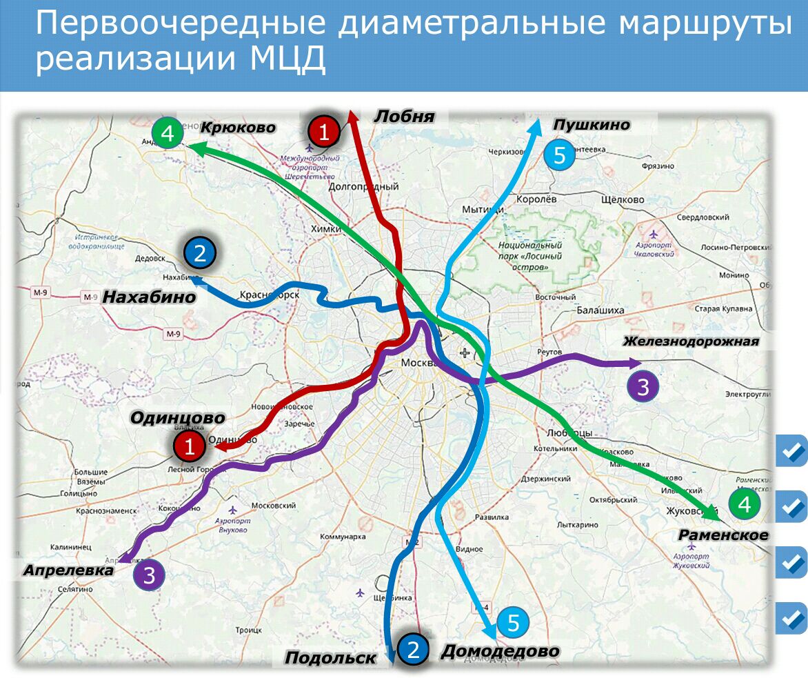 Сегодня внимание пассажиров приковано к проекту «Московские центральные диаметры», предложенному в ноябре 2017 года генеральным директором ОАО «РЖД» Олегом Белозёровым и мэром Москвы Сергеем Собяниным и одобренному президентом России Владимиром Путиным. На первом этапе проект включает 52-километровую линию МЦД-1 Одинцово – Лобня и 80-километровую линию МЦД-2 Подольск – Нахабино. Пригородное сквозное сообщение на этих направлениях существовало и раньше, но оно было нерегулярным. Отличием же сервиса МЦД станет интенсивное тактовое движение комфортабельных городских электропоездов и максимальная интеграция через пересадки и единый билет с метрополитеном и наземным транспортом, пояснил начальник столичной дирекции управления движением Сергей Кобзев.
