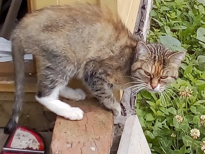 В Климовске (Гривно) в частном секторе найдена кошка. Трехцветная, небольшая. Перелезла через железный забор, прыгала на окна дачного домика. Очень голодная и пугливая. Заняла место в сарае и там сидит... Ищем старых или новых хозяев для кошечки.