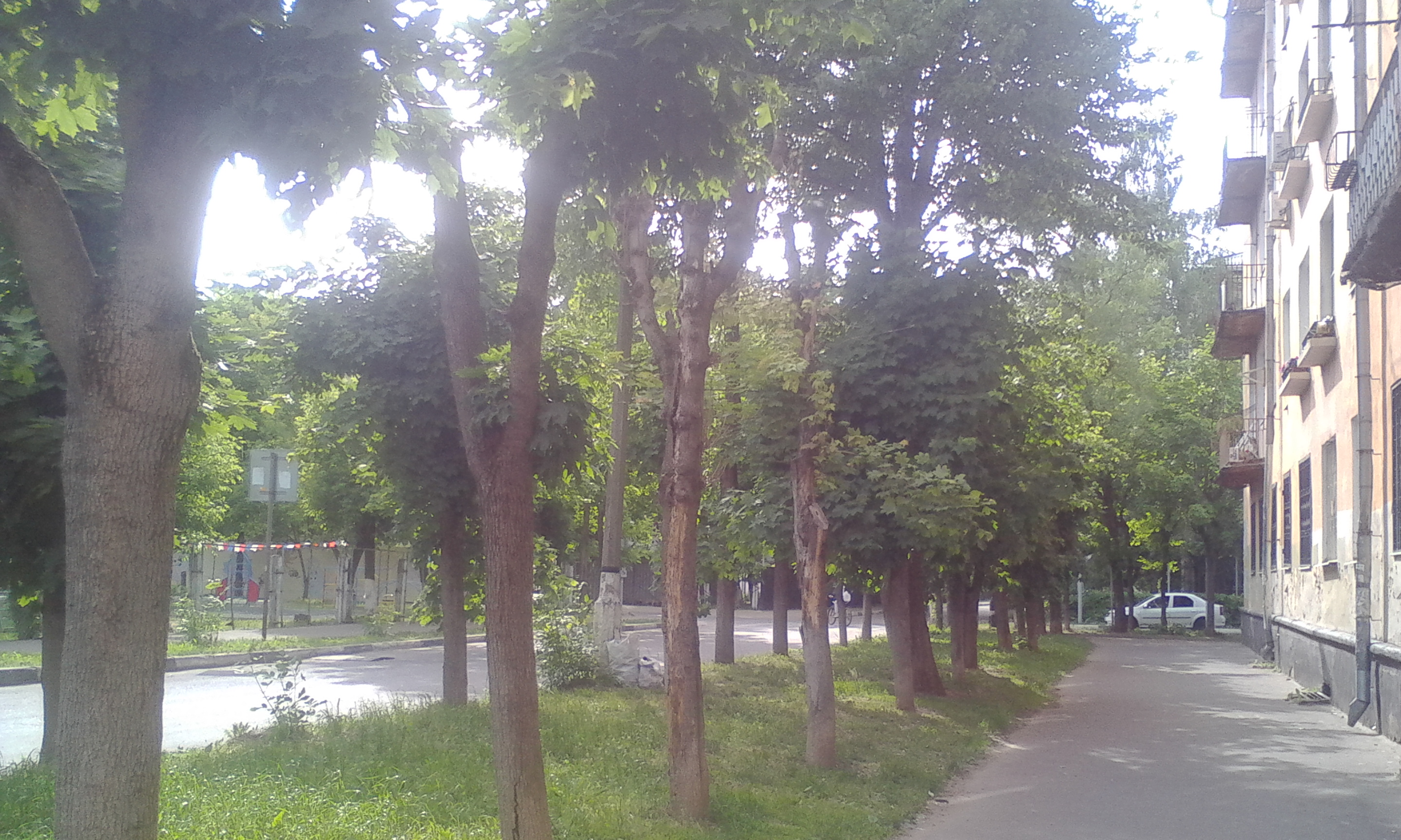 facepalm: По моему мнению, многие эти деревья обрезали до пеньков, точнее таких же стволов, как и на фотографиях Летучки (улица Пантелеева и около 5 школы) более 5 лет назад. А во дворе и детском саду - лет 10 назад.