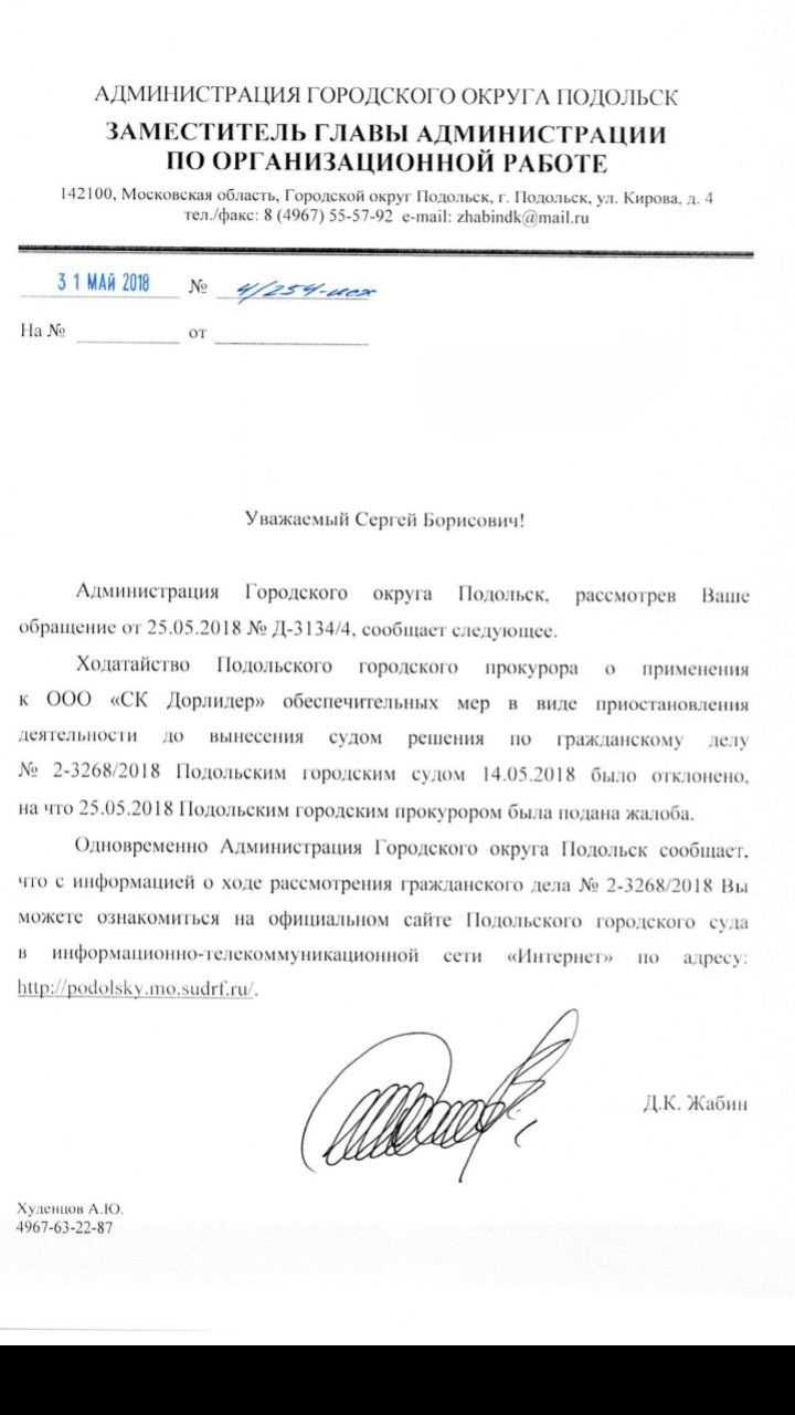 Администрации поставляет? Значит точно не прикроют , что очень печально.летучка писал(а): ↑06 июл 2018 08:10 Rasya, 5 июля Подольским городским судом принято решение приостановить деятельность ООО «СК Дорлидер» до получения разрешения на выбросы и разрешения на сокращение СЗЗ.