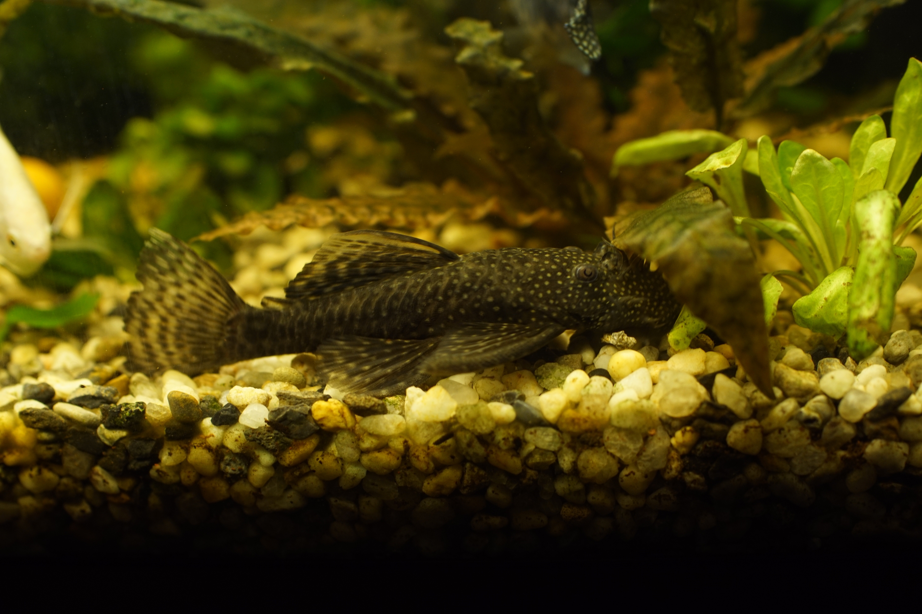 Анциструс, возраст полгода наверно, самец с рожками, живет один без пары, ему скучно у меня, совсем неприхотливый, кабачки любит, и гранулы корм.