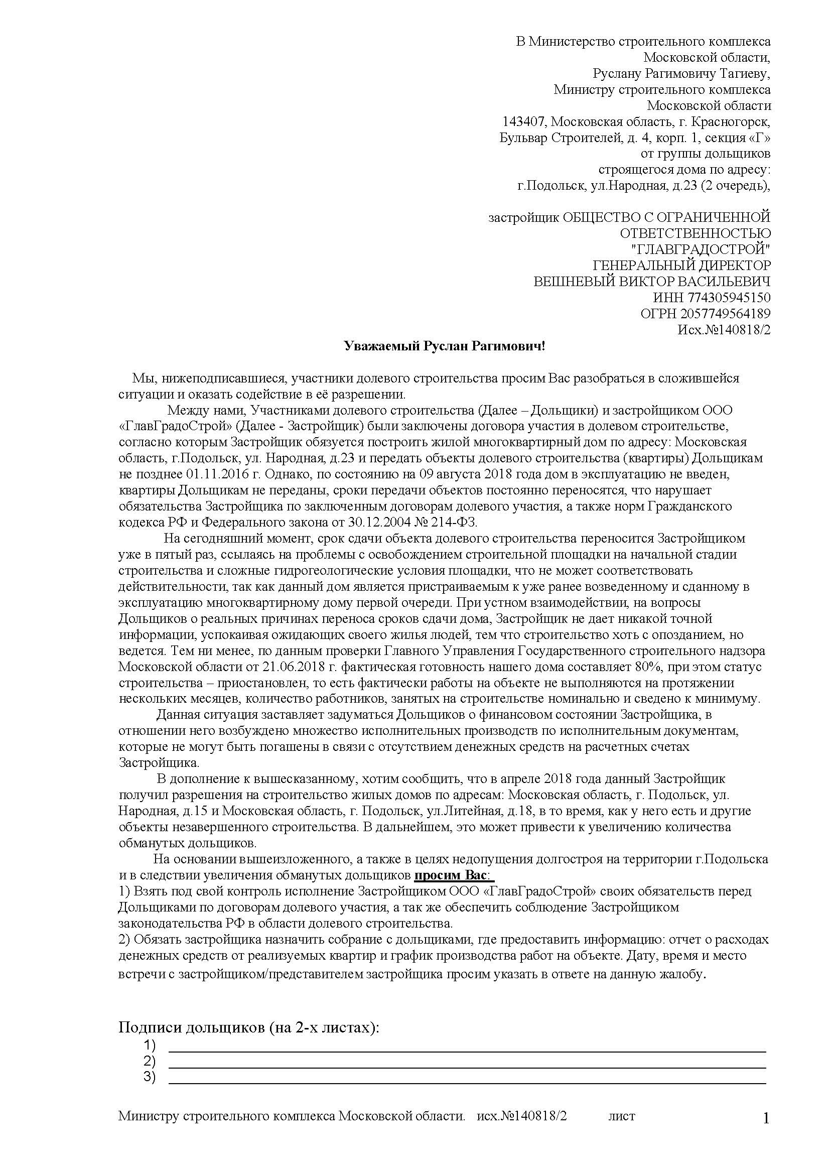 Gbhjujd писал(а): 13 авг 2018 18:34 Главе города подольск. Читаем. Редактируем. Если готовы. Дальше организую процесс сбора подписей. Ну и активнее.