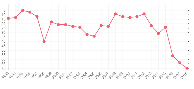 фифа наконец опубликовала новый рейтинг сборных. Ну что, ЧМ прошел не зря, Россия поднялась аж на 21 строчку (больше всех) и стала 49. Всё равно не очень понятно, что мы делаем в такой жопе рядом с Болгарией и Нигерией.