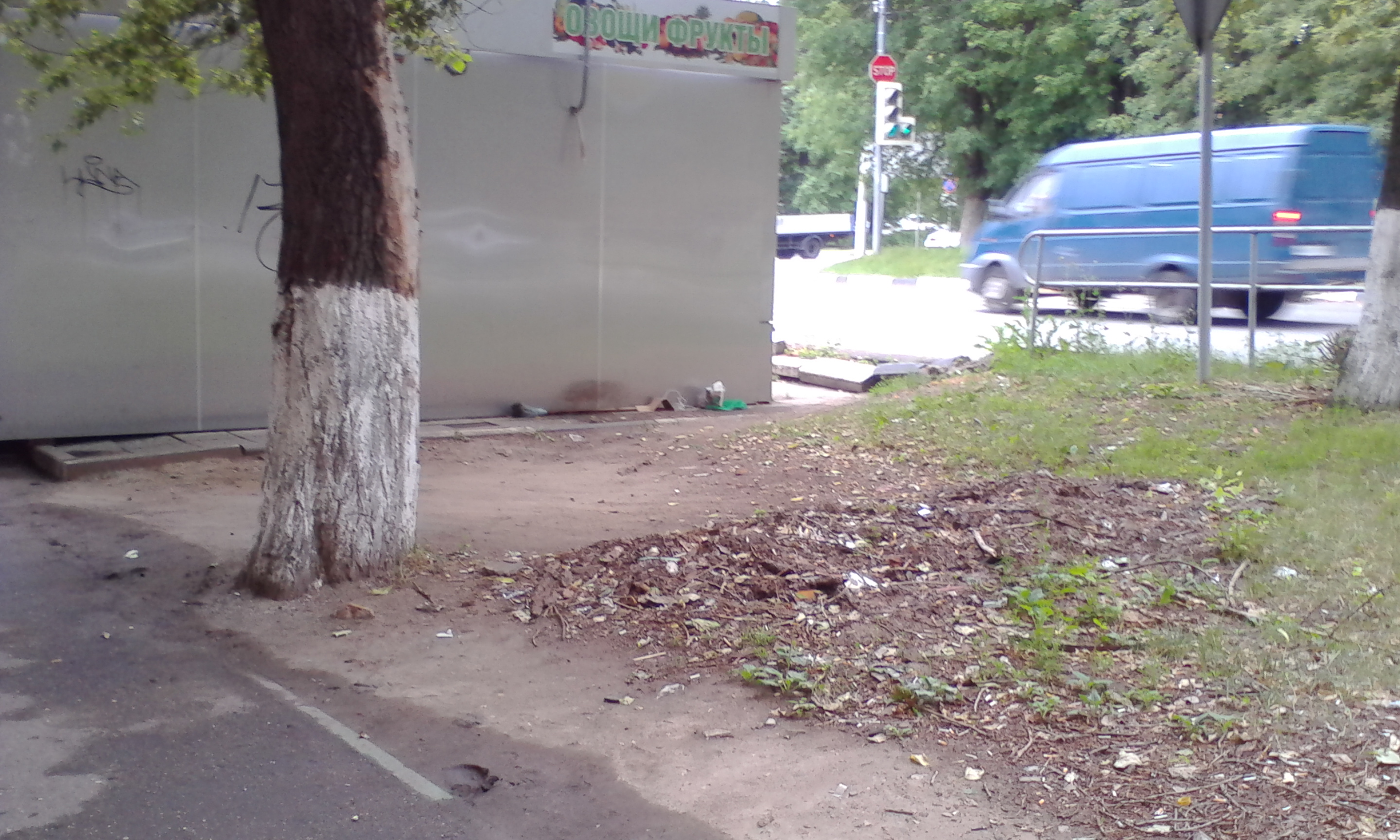 От овощного ларька щепки отгребли подальше.