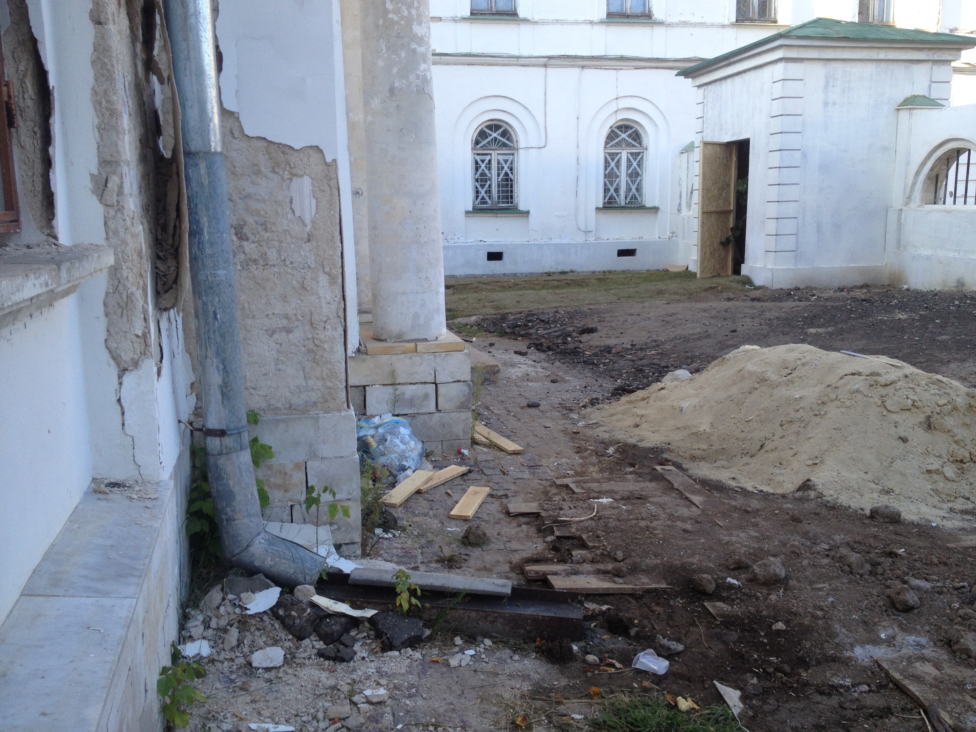 Как и предполагалось, дедлайн стремительно приближается, работ по возвращению прежнего облика внутреннему усадебному двору ещё хоть пруд пруди.. Увы, период съёмок для усадьбы не прошёл бесследно - не обошлось без урона(