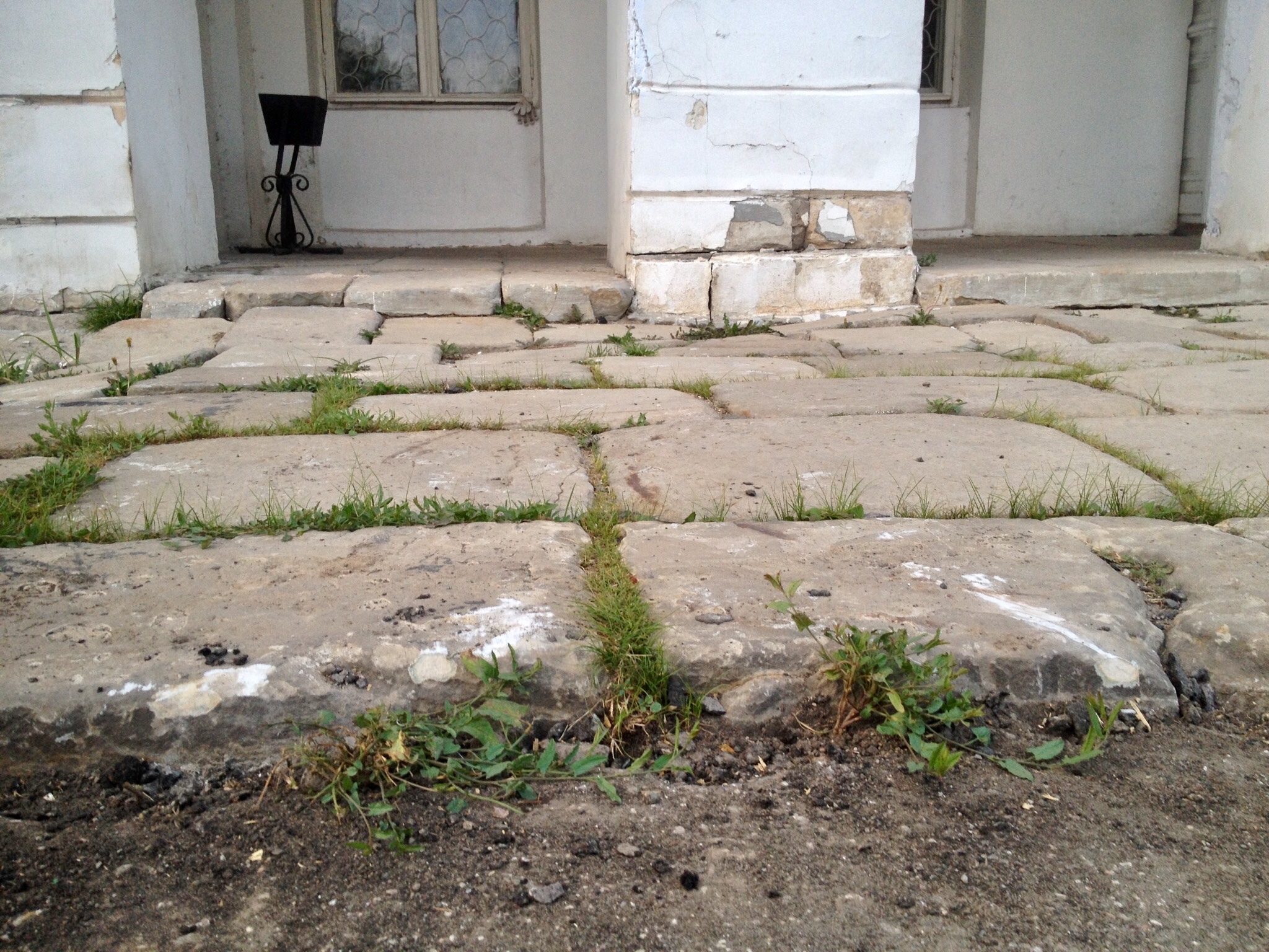 Тяжелая техника с люлькой, которая многажды стояла у основания памятника 18 века ( лепили эмблему для съёмок на фротнон, снимали эмблему, скребли окна и тд) ПОВРЕДИЛА АУТЕНТИЧНОЕ КРЫЛЬЦО.