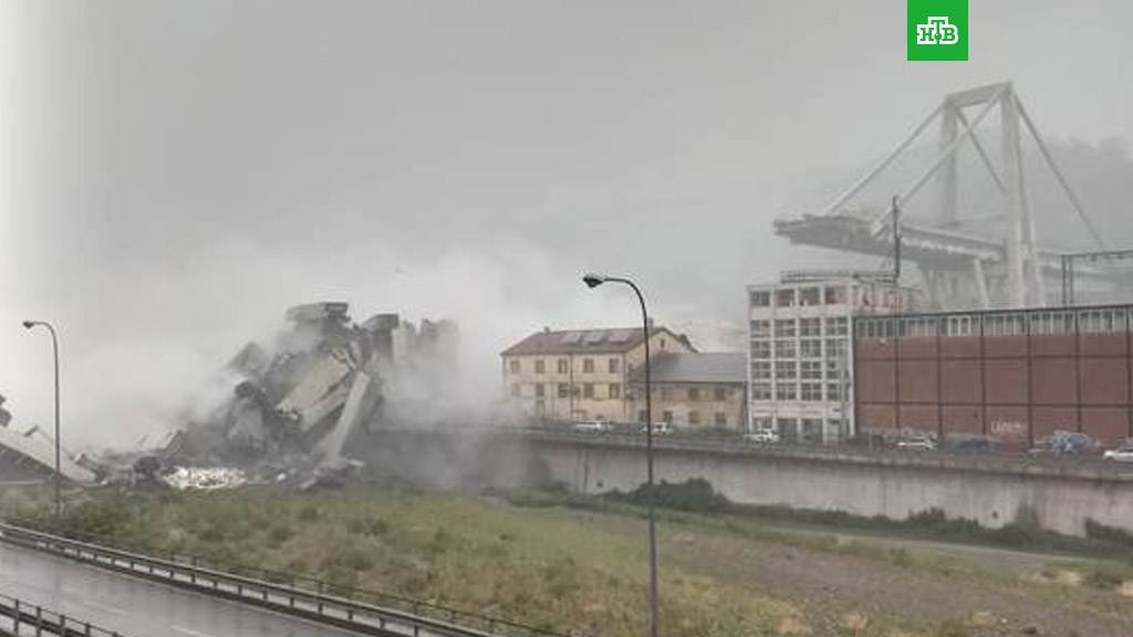 Десятки людей погибли при обрушении автомобильного моста близ итальянской Генуи