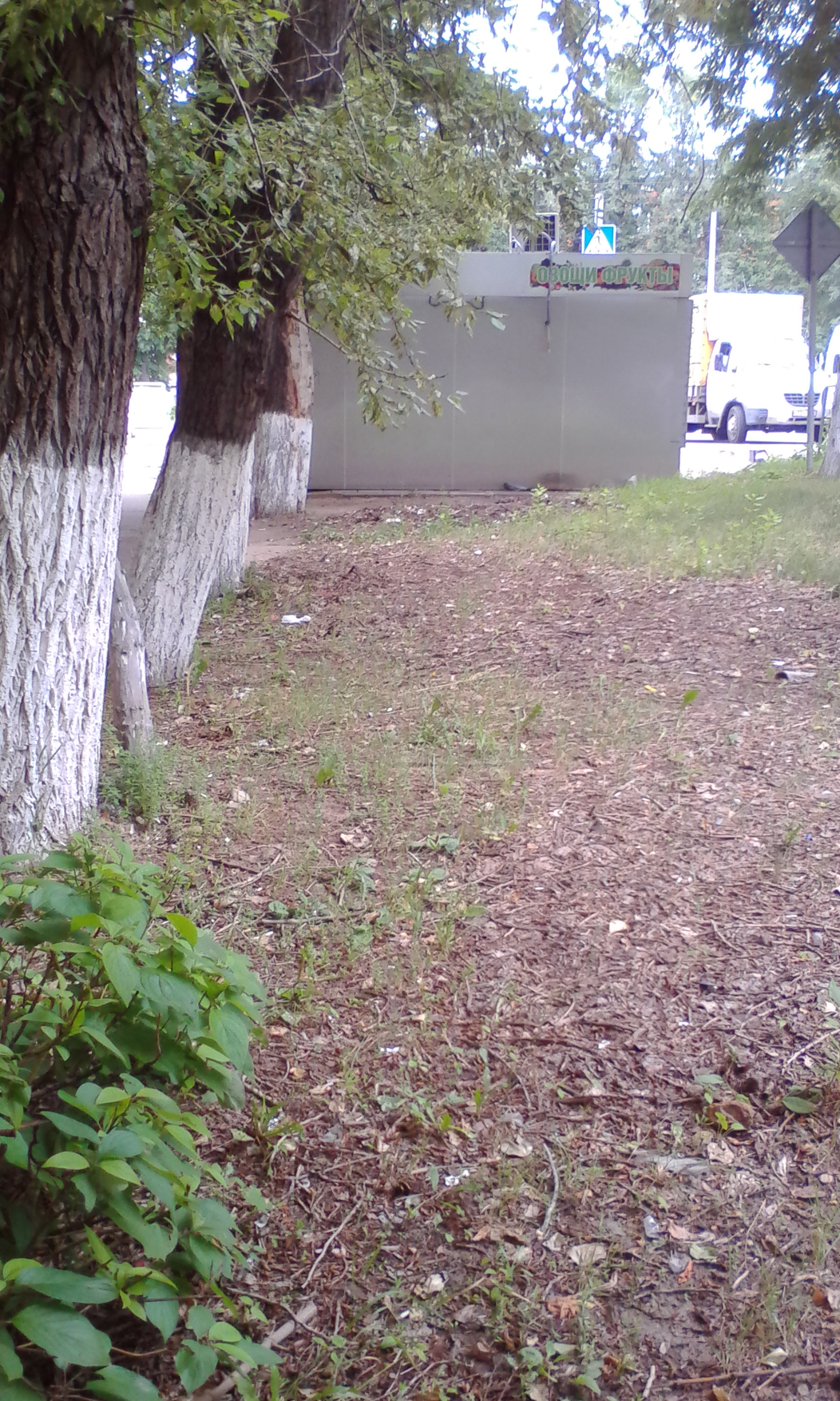 От овощного ларька щепки отгребли подальше.