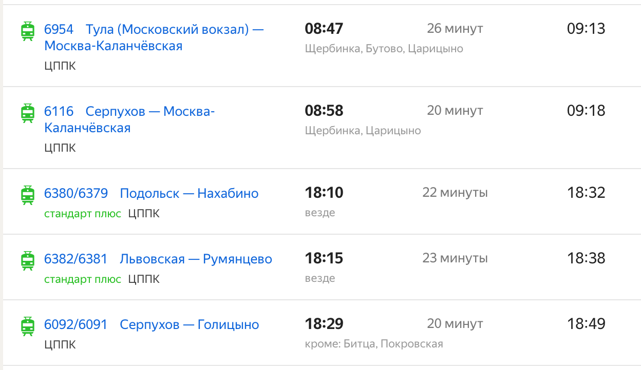 Экспресс - Кутузовская-Подольск-Силикатная-Щербинка-Царицыно? Никого не забыл? Все довольны?