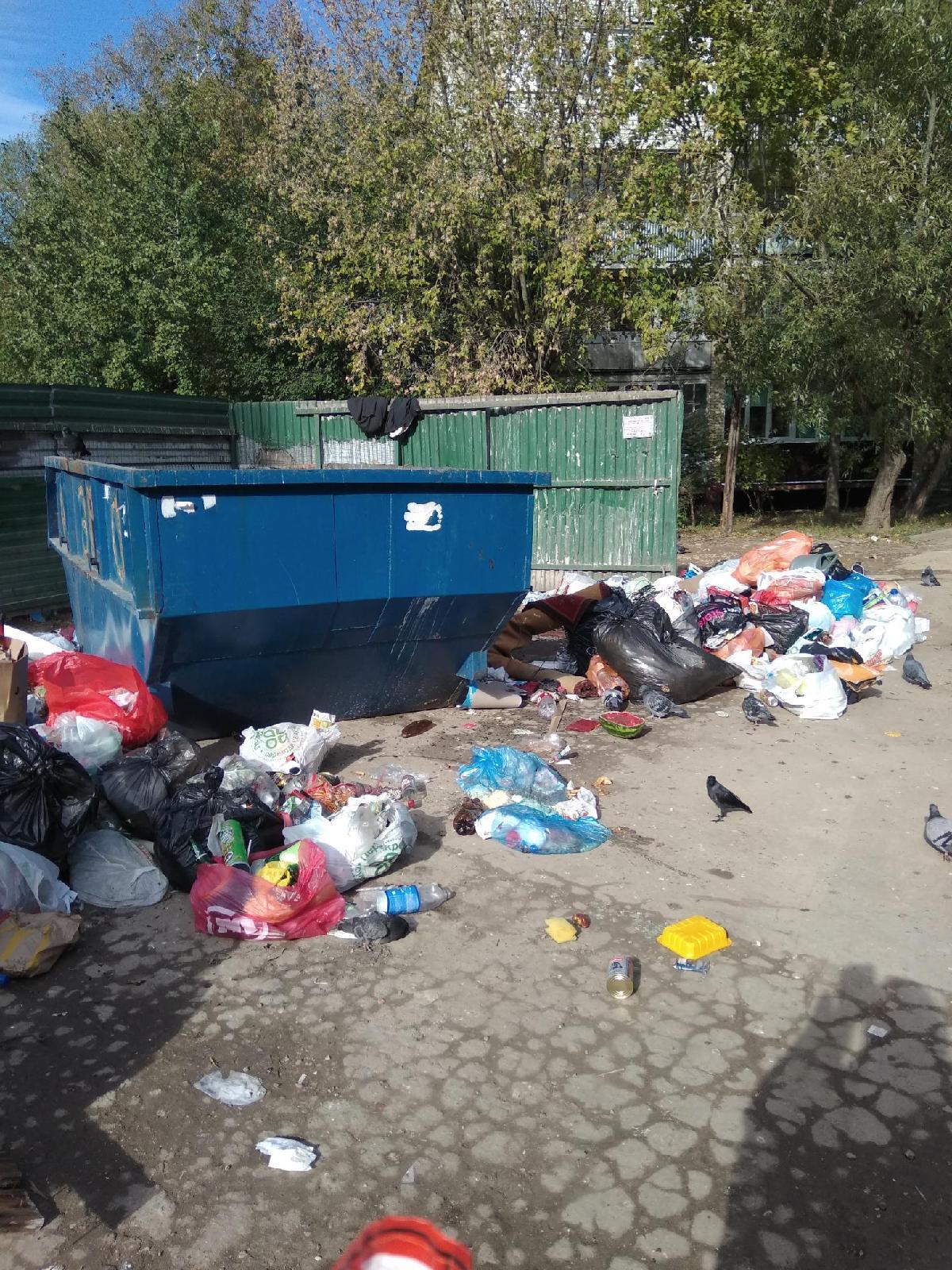 после приезда мусоровоза в 9 утра. оставили мусор возле контейнера. в воскресенье вообще не забирали