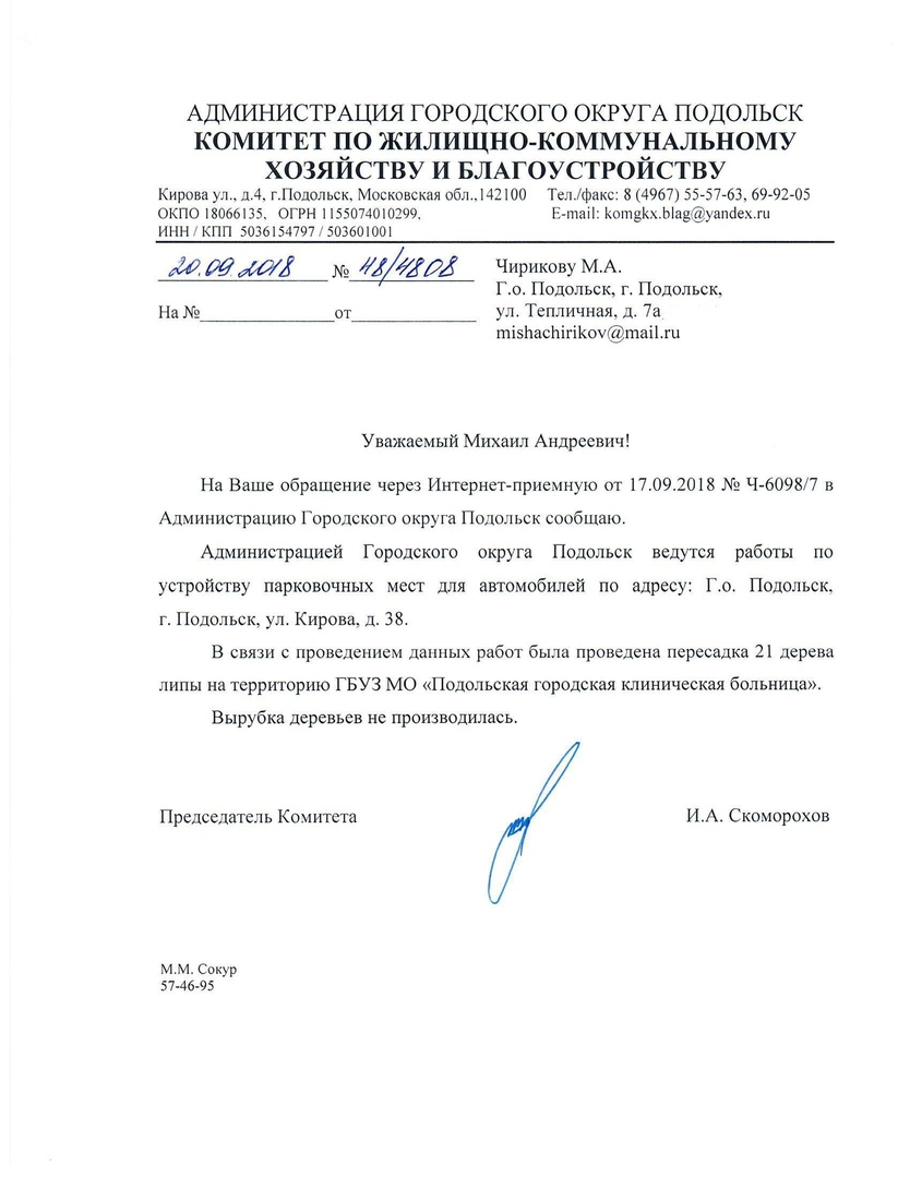 Ма-муся, могли еще на березу пожаловаться "Доброделу". По таким жалобам обычно делают только то, на что жаловались.