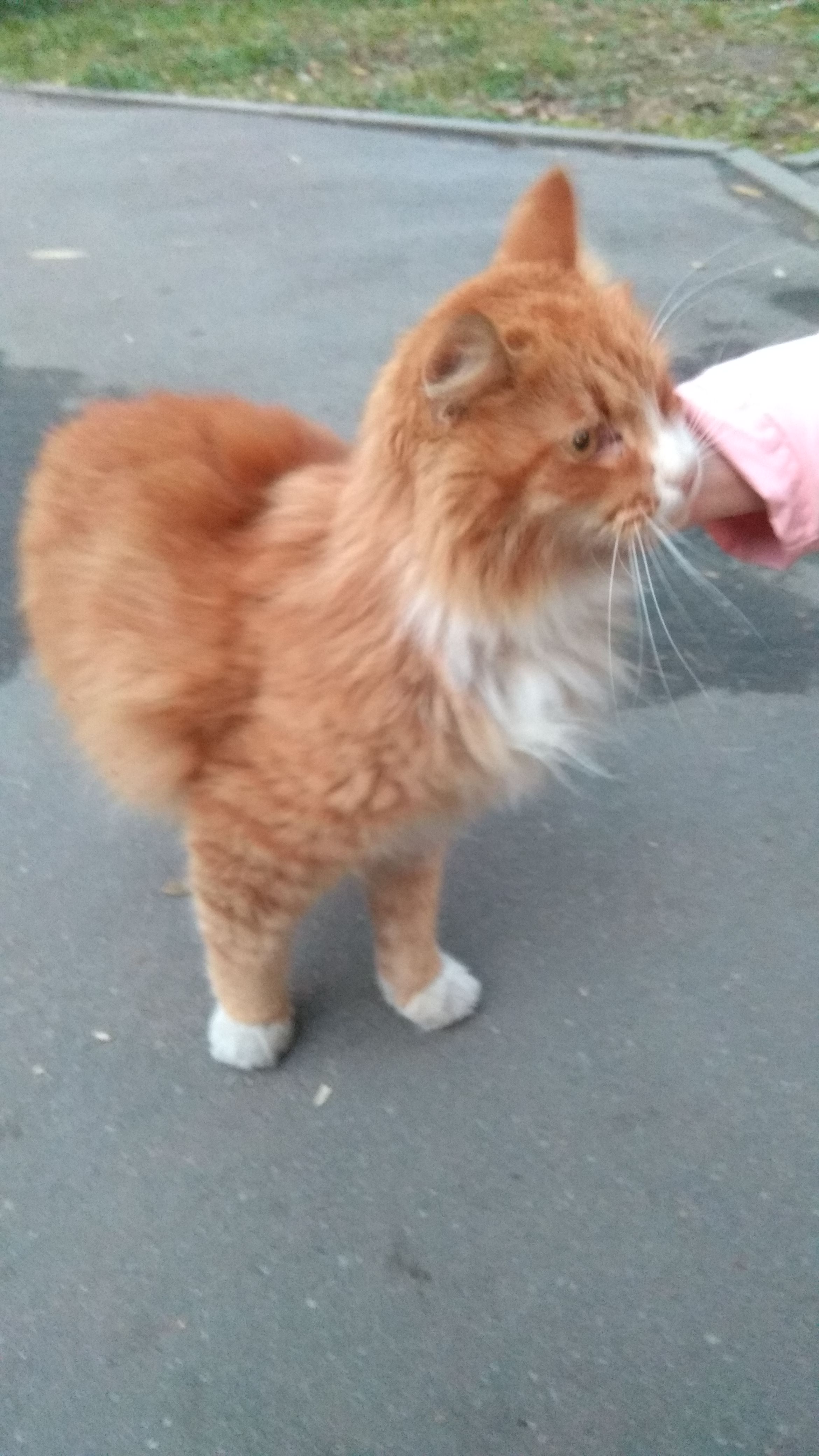 В районе станции Силикатная найден рыжий кот. Очень похож на Мейн куна. Ласковый.