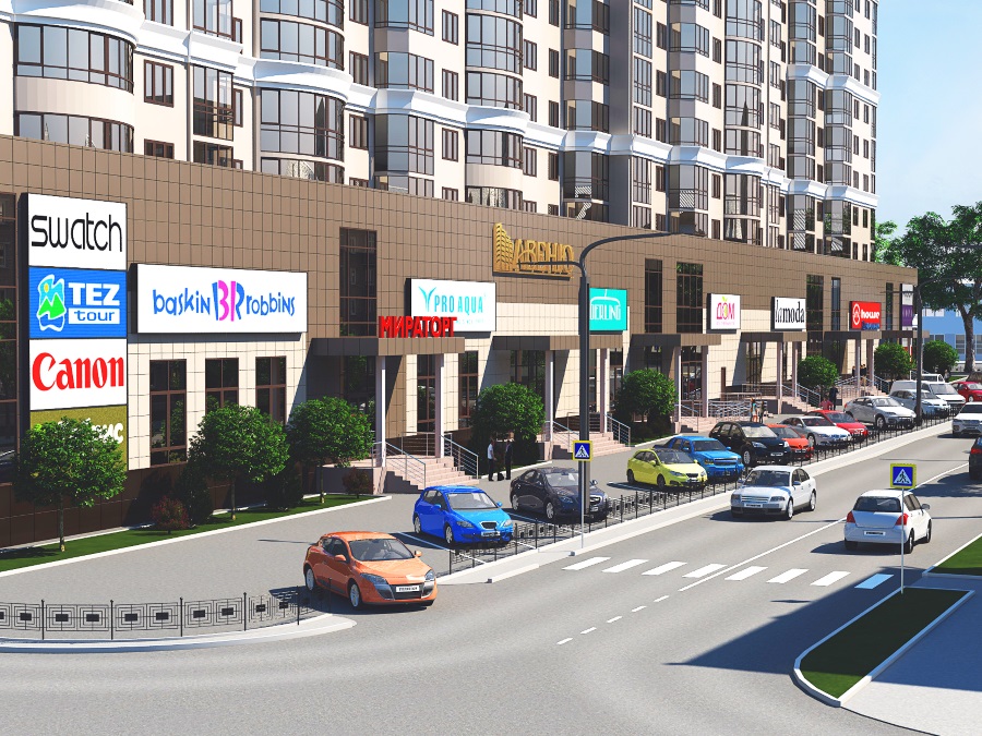 Занимая очень выгодное расположение, ТЦ «Авеню» станет одним из любимейших торговых площадок города. Ведь в нем будет располагаться все самое необходимое. На первом этаже будут располагаться супермаркет, отделение банка, магазины косметики и парфюмерии, кафе, аптека, оптика и др.