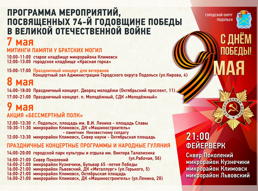 Мероприятия в Подольске ко Дню Победы
