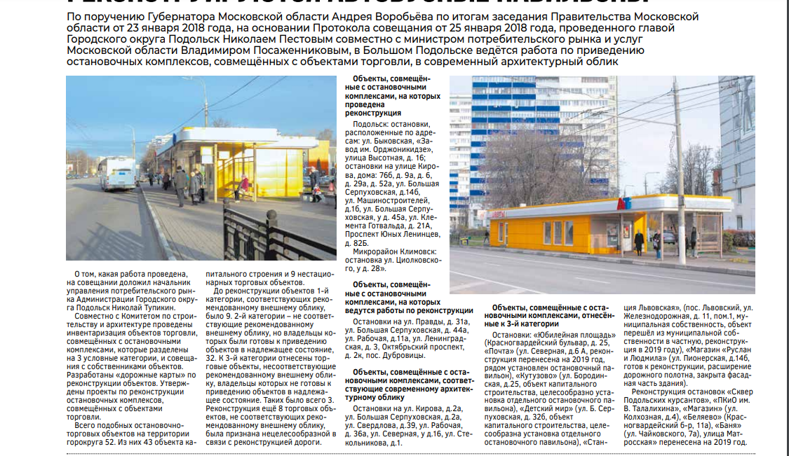 О реконструкции остановочных комплексов в Подольске (с торговыми объектами)