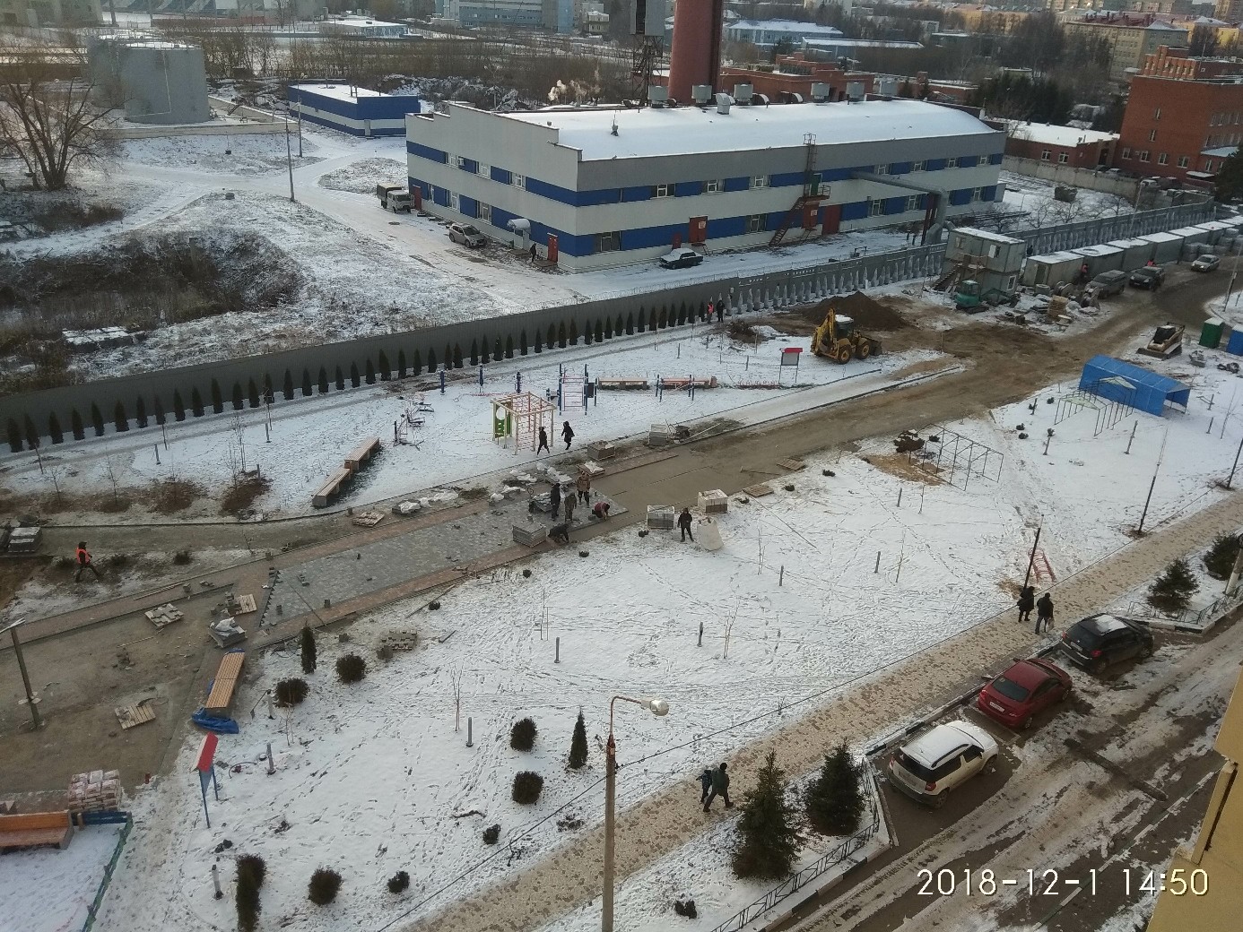 В мороз кладут брусчатку, в снегу прикручивают провода к крутейшим светильникам на бульваре "Молодой Подольск".
