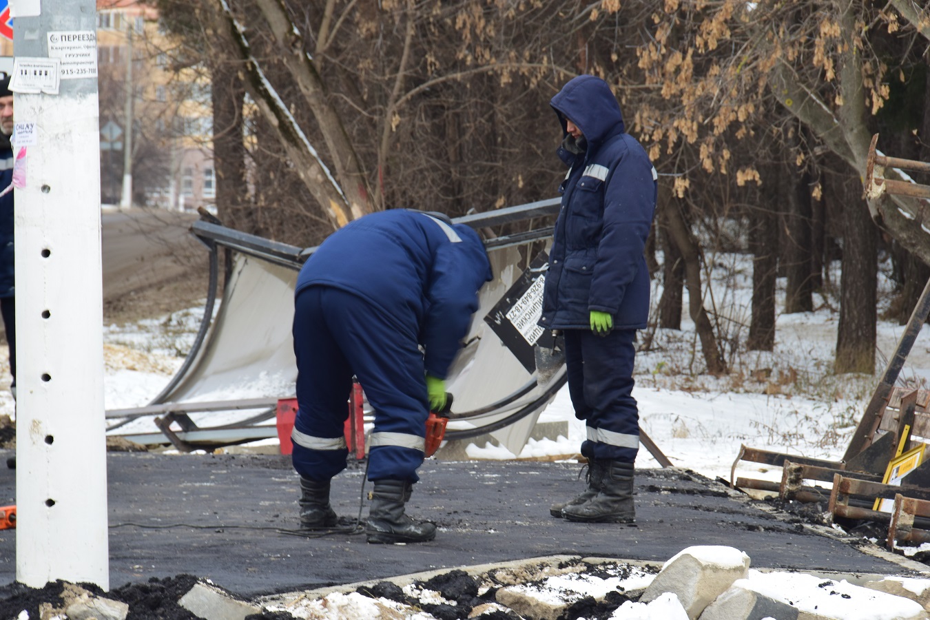 В мороз кладут брусчатку, в снегу прикручивают провода к крутейшим светильникам на бульваре "Молодой Подольск".