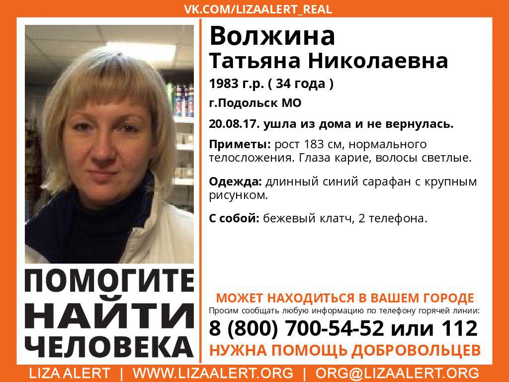 Пропала Волжина Татьяна Николаевна, 34 года, Подольск.