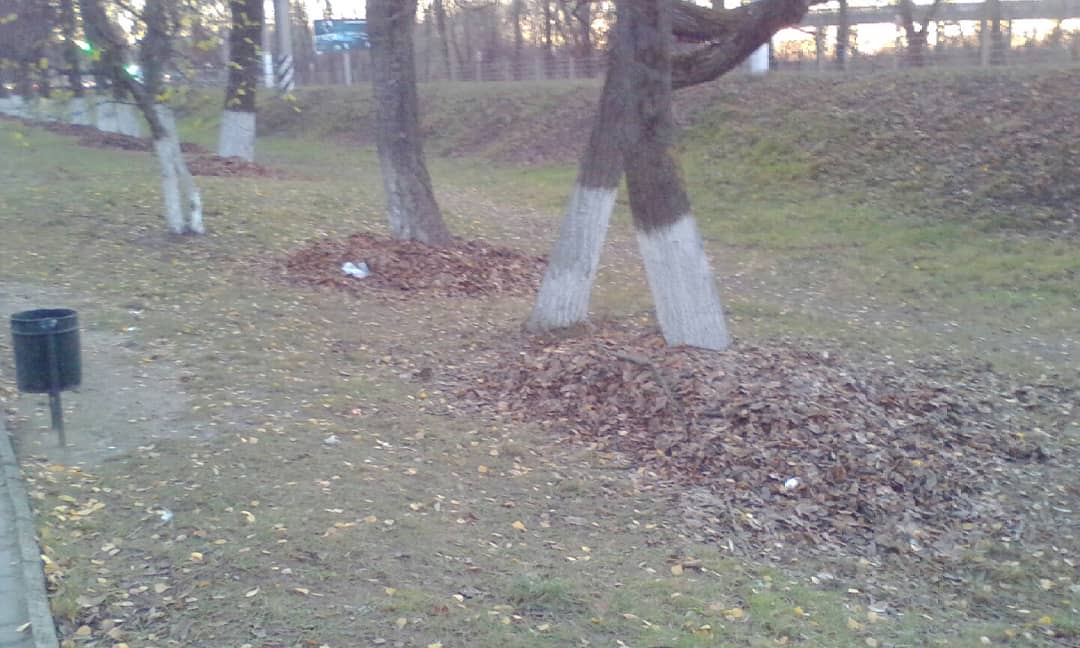 Почему под деревьями, где типа газон и аллеи, были сметены опавшие листья? Это давно уже запрещено и карается административно, так как вредит почве. Кроме того, согласно ст. 64 Закона Московской области № 191/2014-ОЗ «О благоустройстве в Московской области» в период листопада производится сгребание и вывоз опавших листьев с проезжей части дорог и дворовых территорий. С проезжей части, но никак не с газонов! Вы лишаете деревья естественной защиты во время зимы. Обращаю внимание, что проезжая часть при этом остается вся в листве. Прикладываю также прошлогодний ответ: вы повторяете ошибки.