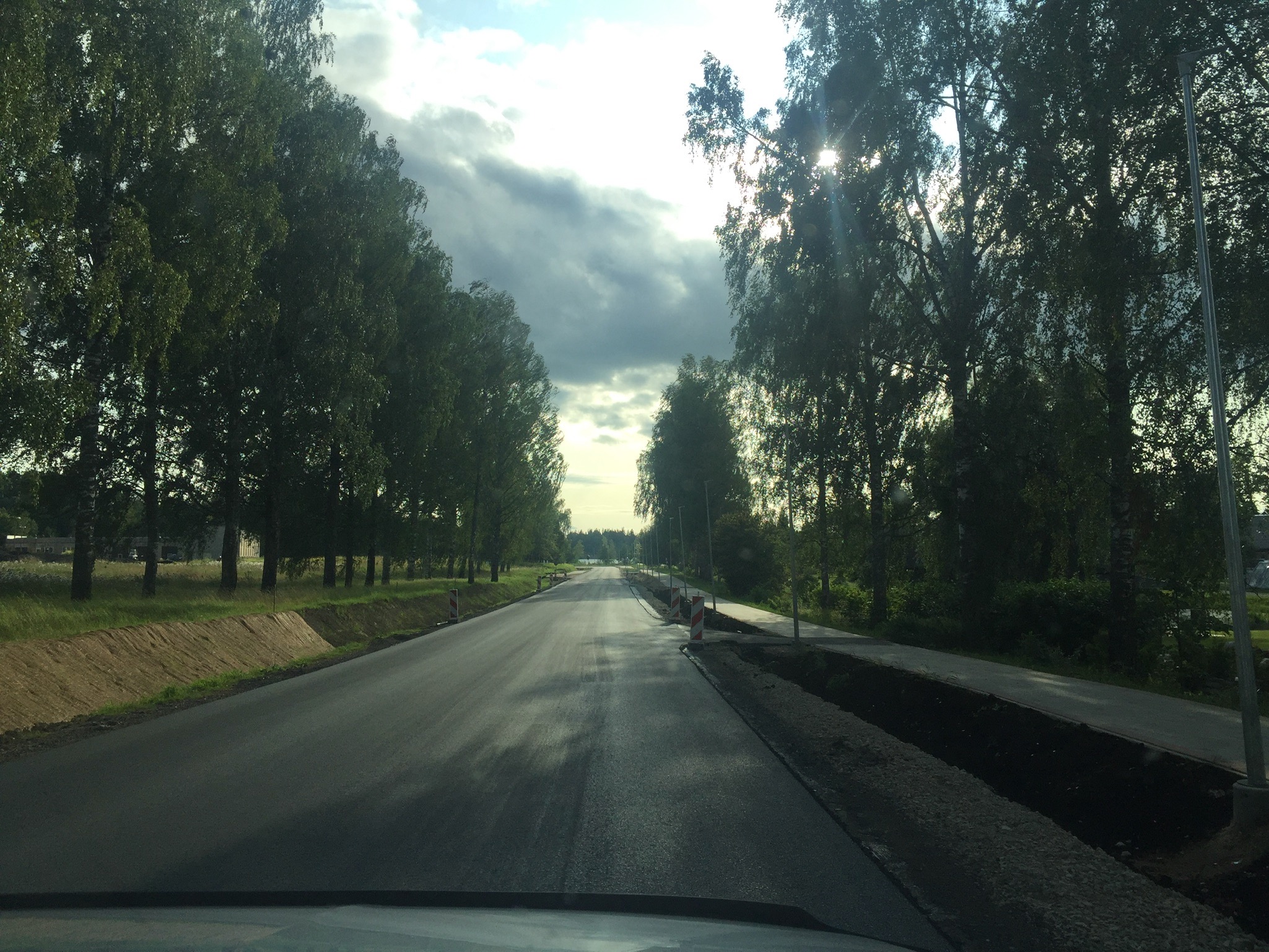 Вот, например. Плохо видно, но приглядеться можно - ремонт дороги по всем правилам не щебеночной подушке, тротуар и ливневка, и столбы освещения, и канавы с отсыпкой по георешетке. В Подольске от таких технологиях не в курсе, от Силикатной до Красной горки можно ходить только по проезжей части или перелезать через забор кладбища. Деревня в получасе езды от границы. Т.е. еще километров 300 до столицы. Тут десяток домов и три коровы