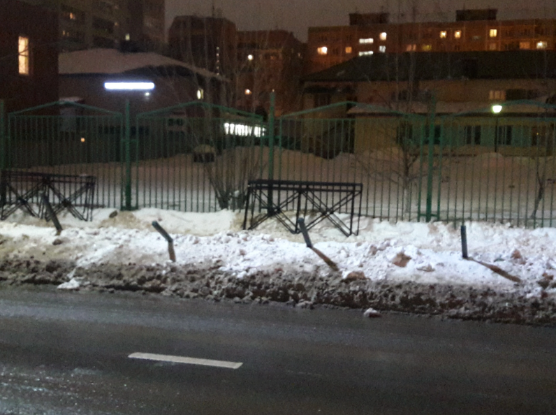 Забор на блотах и части их не было. Раза 3 обращался через Добродел что бы его привели в порядок - отвечают что его не приняли еще.