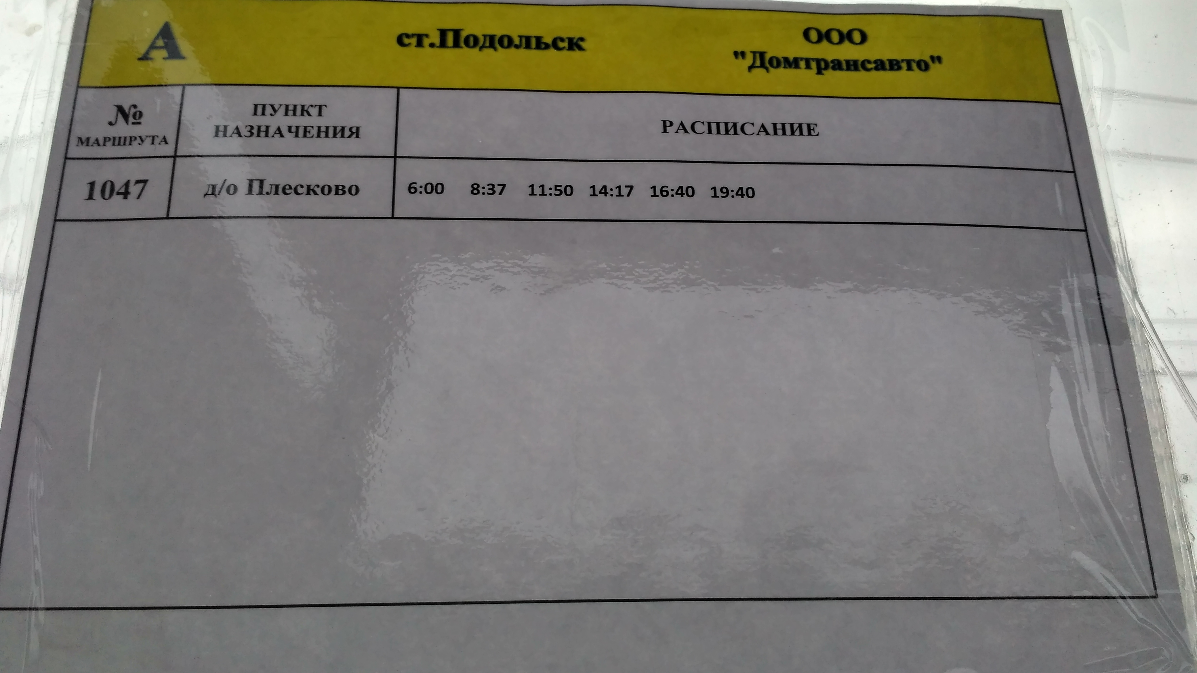 На ст. Подольск вывесили расписание Домтрансавтовских маршрутов (расписания висят на остановках).