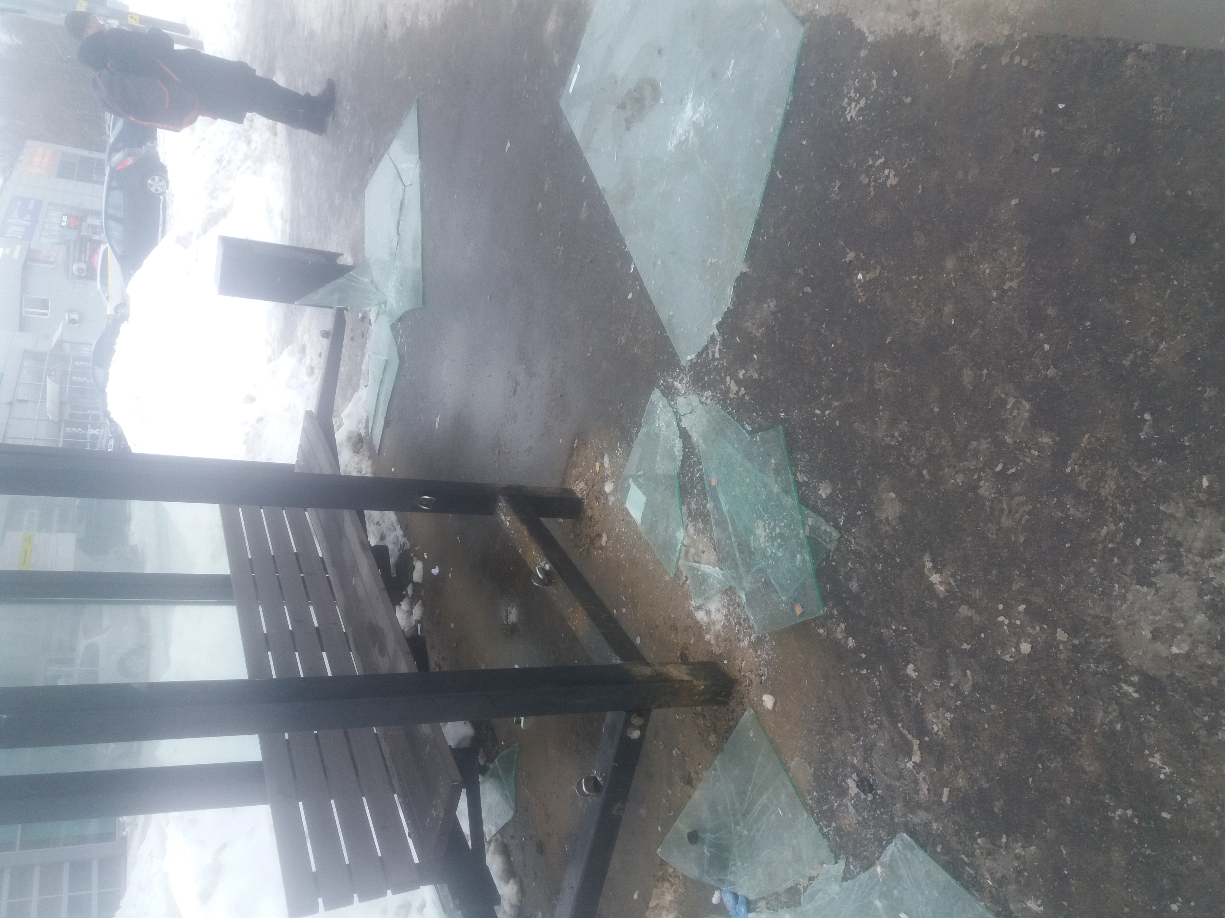 А вот стекла от прошлой остановки их почему то не убрали, но они целы
