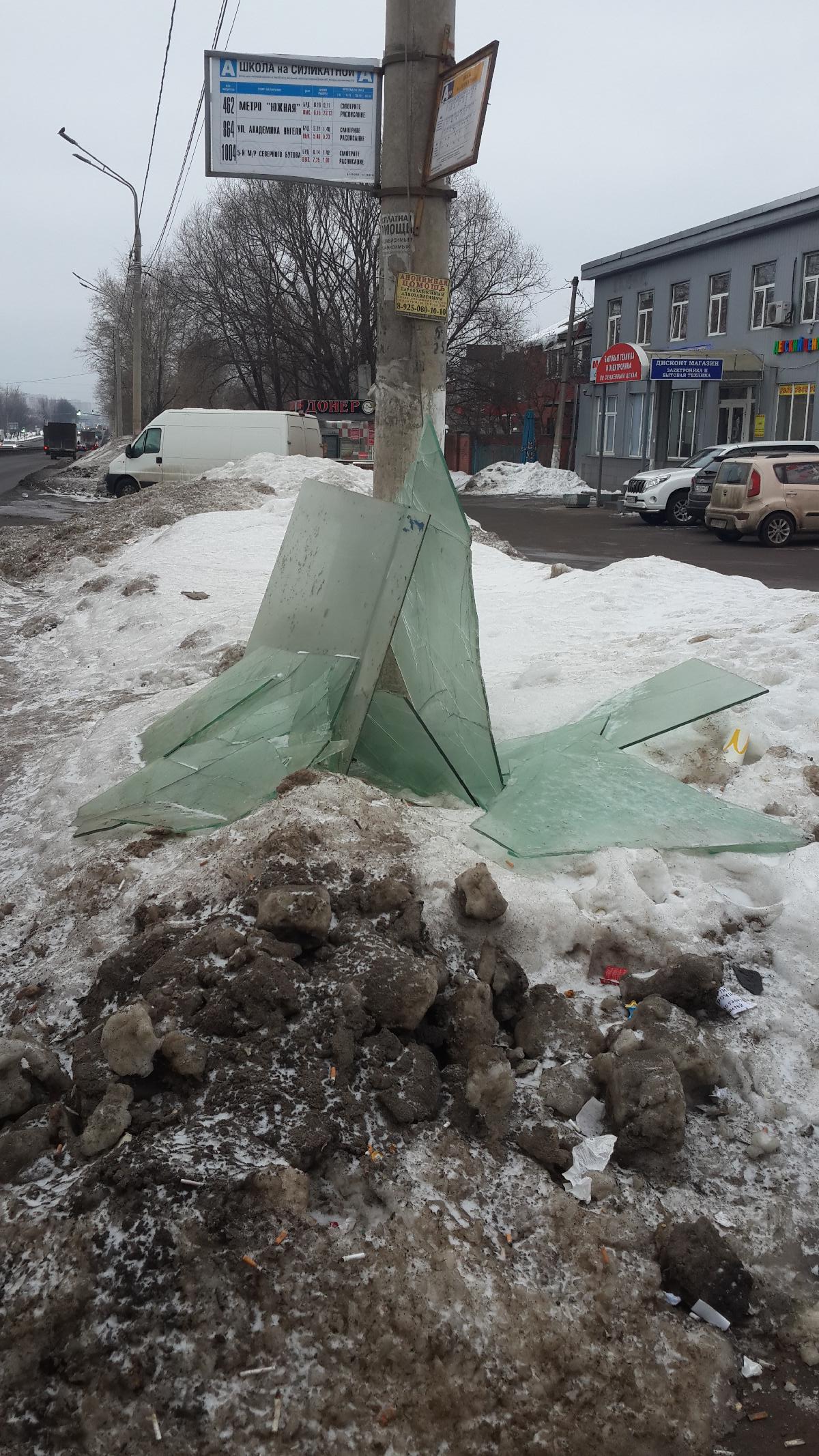 Добрый день! уберите стекла! Остановка Школа в сторону Москвы!