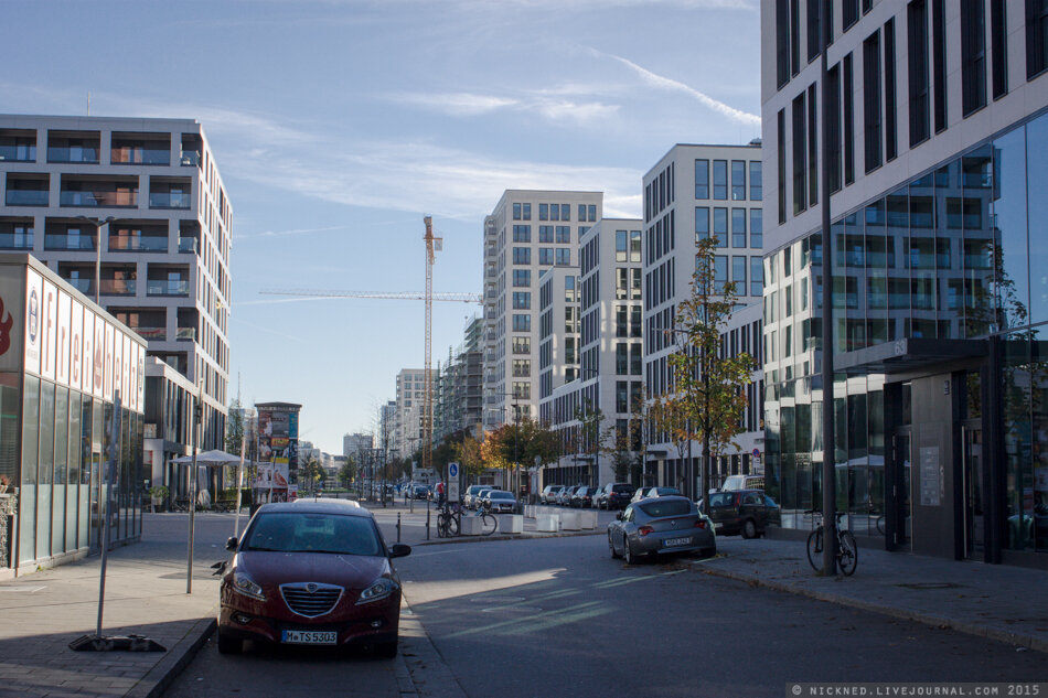 Вот спальный район здорового человека с плотностью населения немногим меньше, чем в Подольске, и абсолютно идентичной Москве. Внимание на этажность: А вот центр города района, повторюсь, с плотностью населения как в Москве: Где все небоскребы? А нету их, они не нужны при профессиональном планировании.