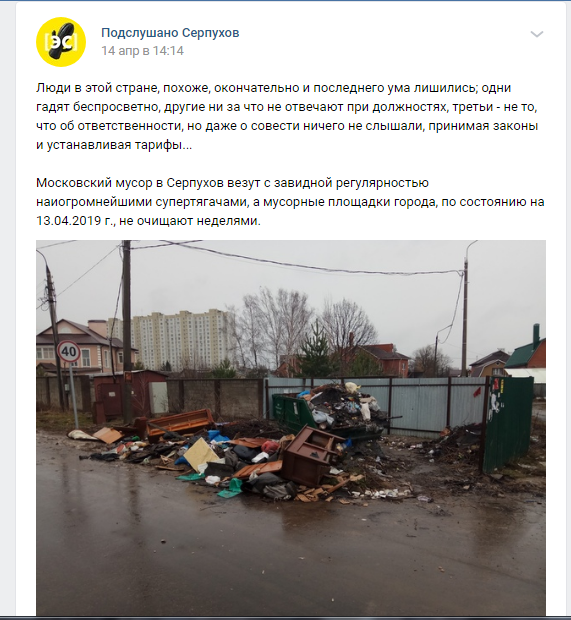 На полигон в Серпухов везут мусор со всего Чеховского кластера. Серпуховские помойки от этого чище не становятся.