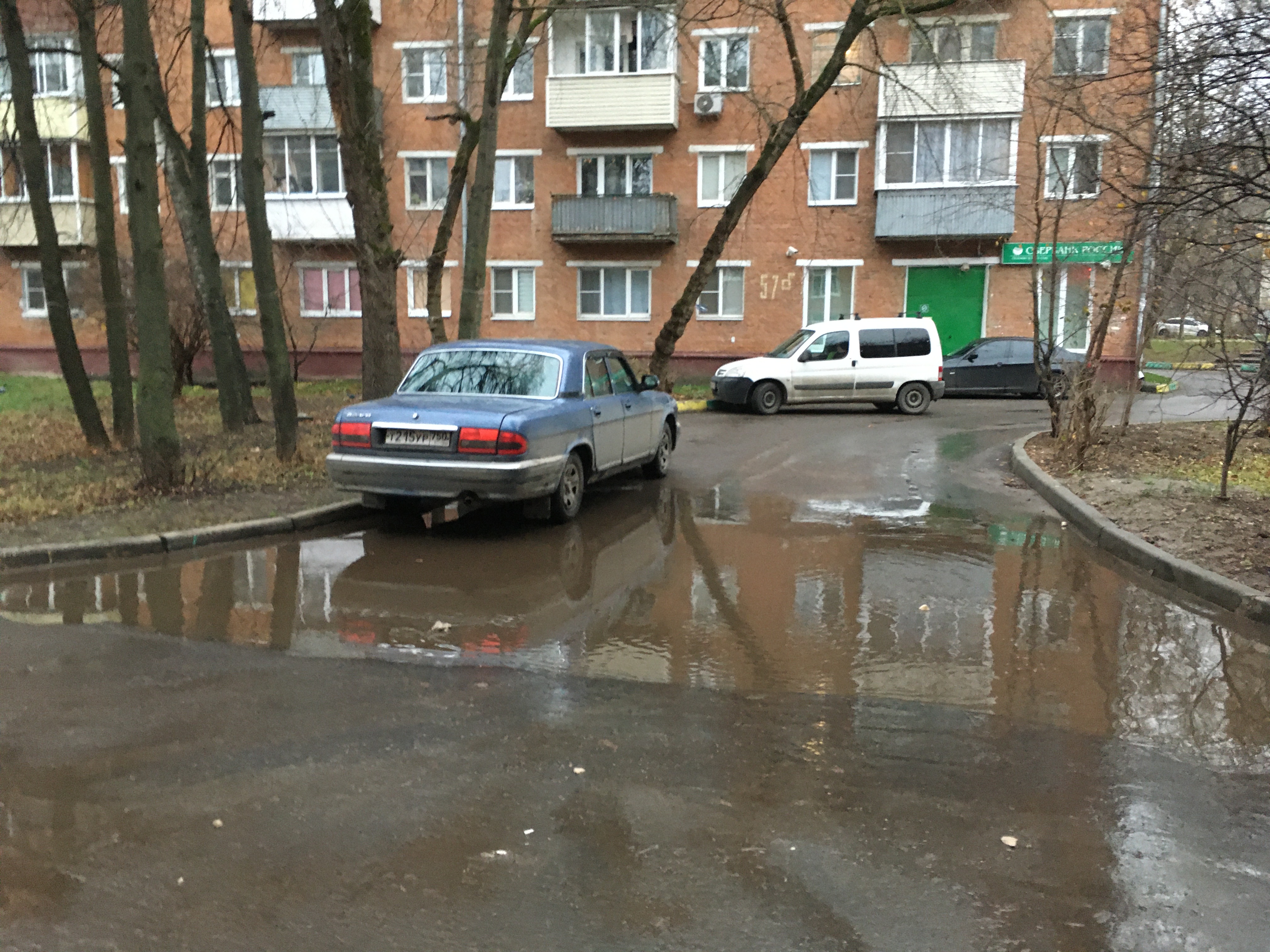 На Парковой 57, между домами 57-в — 57-б уложили новый асфальт - да так криво уложили, что стало совсем невыносимо! лужи стоят глубокие, в дождь растекаются и стоят лужищи от бордюра до бордюра, сплошной, так, что пройти невозможно. На снимке дождь лил сутки назад — а в дождь здесь наводнение!