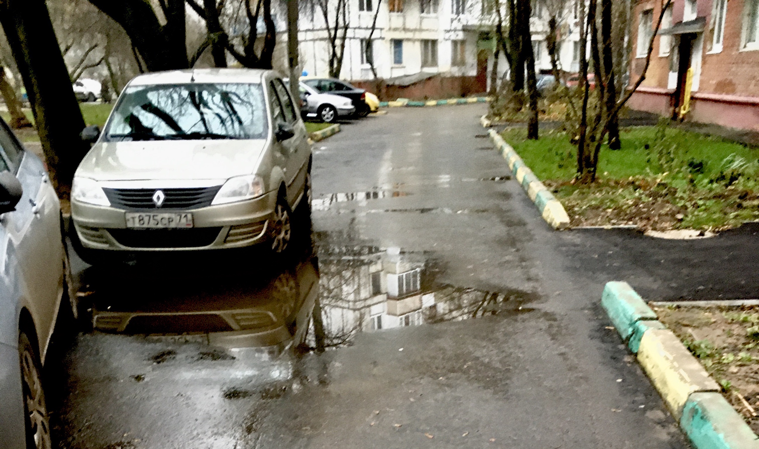 На Парковой 57, между домами 57-в — 57-б уложили новый асфальт - да так криво уложили, что стало совсем невыносимо! лужи стоят глубокие, в дождь растекаются и стоят лужищи от бордюра до бордюра, сплошной, так, что пройти невозможно. На снимке дождь лил сутки назад — а в дождь здесь наводнение!