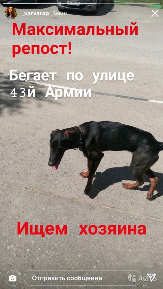 Sofi219 писал(а): 09 ноя 2019 01:49 Здравствуйте. Утеряна собака в 2003 году. Небольшая. Смесь овчарки. Более гладкошёрстный. Отвлекается на кличку Буран!Кабель. Видели на станции Силикатная в те годы. Может и в Москве уже где он, но чувствую , что в Подольске где-то. Где сейчас неизвестно. Возможно ещё жив. Буду очень признательна, если найду! Буду помогать новым хозяевам.