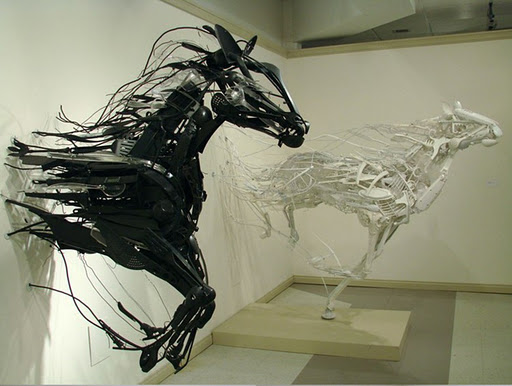 .. композицияс лошадьми из кухонных ложек-поварежек половников.