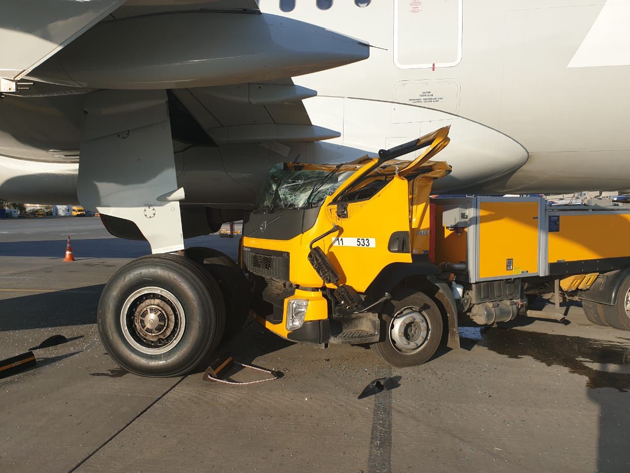Сегодня в ШРМ грузовик в самолёт врезался.