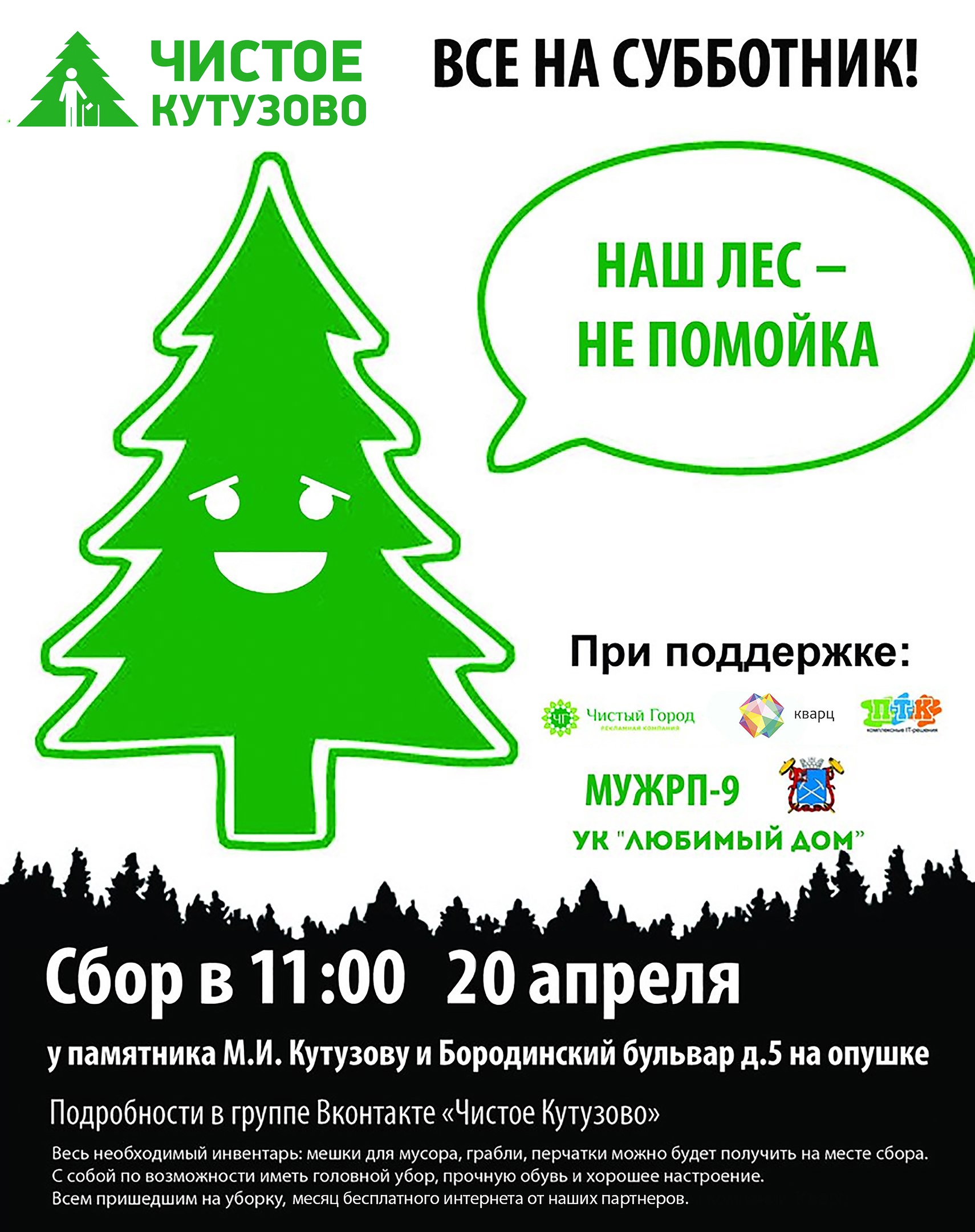 Мы в контакте: http://vk.com/chistoektz -проект "Чистое Кутузово".
