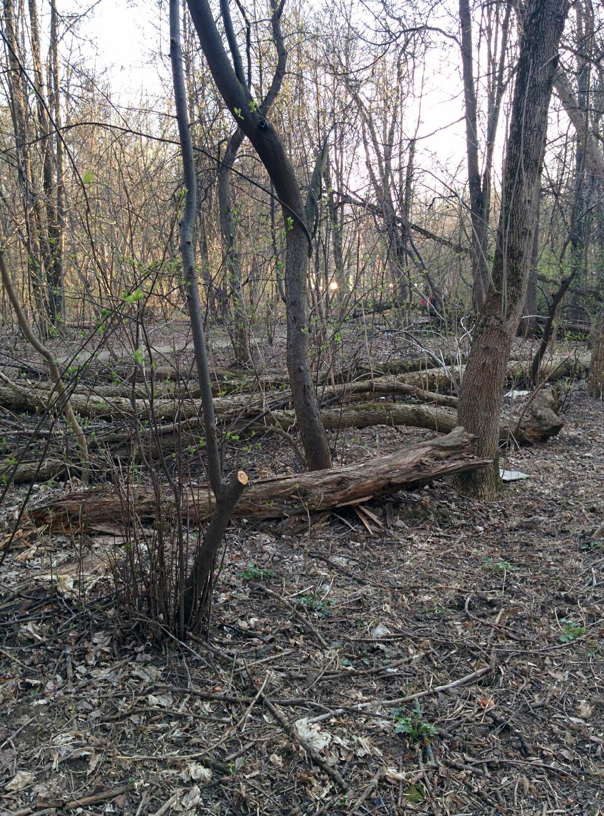 Просьба убрать мусор в лесу за сквером 200 летия Подольска